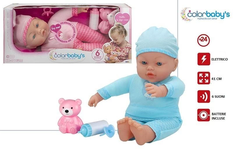 Bambola alta 41cm, morbido Bebè primi Versetti con 6 Suoni. Il Bambolotto proverà a parlare come un neonato vero, Giocattolo Certificato, Batterie e Accessori Inclusi.