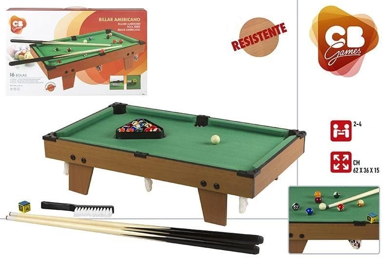 Biliardino da Tavolo per Bambini, Biliardo in Legno di qualità dimensioni 62x36x15cm. Biliardo dotato di 16 Palle, 2 Stecche, gessetto e spazzola. Ottimo gioco per sviluppare la pazienza ed il ragionamento nei più piccoli, grandi dimensioni e ottime finiture. +3Anni