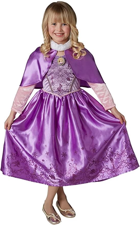 Costume Carnevale Disney Rapunzel con Mantello, versione Invernale (non comprende Scarpe). Travestimento Principessa raperonzolo, prodotto ufficiale Disney Princess.