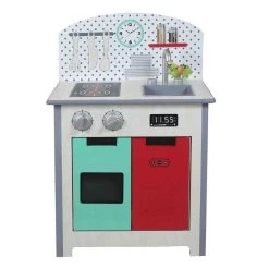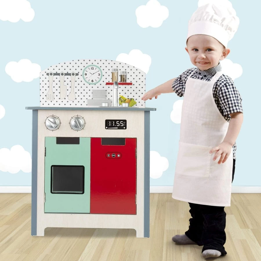 Fantastica Cucina in Legno per Bambini, si divertiranno a fingere di accendere il forno, Lavare i Piatti, Utilizzare il Piano Cottura. Giocattolo di Imitazione, dimensione 47*30*69 cm. La Cucina Giocattolo è fabbricata in Legno, Alta qualità e Materiale Certificato.