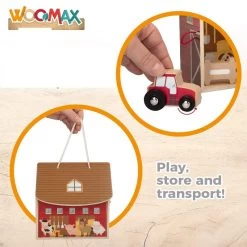 Playset Fattoria in Legno, Set da Gioco Apribile e Portatile realizzato in Legno Pregiato con dettagli e finiture di qualità. La Confezione include 10 accessori tra cui un veicolo Trattore, Contadino e Animali in Legno. Gli elementi sono rifiniti da entrambe le facce, e il Granaio è decorato anche all’interno, tutto con massimi standard di sicurezza e Certificato. +3 Anni