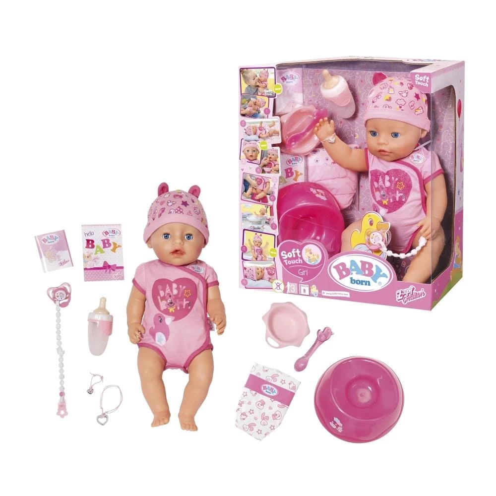 Bambolotto Morbido Baby Born, Per farla piangere basta premerle il torace, toccale il pancino per farle fare i bisognini! Tante funzioni di gioco e 11 accessori in Dotazione.
