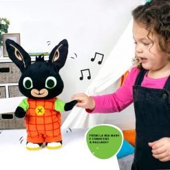 Bing Nuovo peluche Danzante con Musica e Frasi del cartone, il peluche Balla e gioca alle statuine. Come nel Cartone animato il Coniglietto danza a Ritmo di Musica e quando la canzone si Interrompe lui si Blocca Giocando alle Statuine.