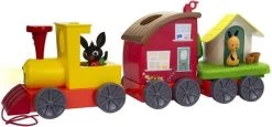 Il Trenino di Bing, stupendo treno Giocattolo che riproduce Luce e Suoni del Cartone. Il Playset comprende delle Stanze-Vagone separabili con due personaggi. Il Playset è dotato di due carrozze, la casa di Bing che può essere rimossa dalla carrozza e aperta per trovare il salotto, il divano e la credenza di Bing. Il carrello posteriore può essere rimosso per trovare il giardino di Bing e la casetta dei giochi con vasi di fiori e un albero, posizionare la statuetta di Bing o Flop all’interno della casetta per iniziare a Giocare. Puoi anche premere per ascoltare i suoni divertenti del treno e la melodia dello spettacolo di Bing, anche la parte anteriore del treno si illumina. Le carrozze sono compatibili con le Mini Casette Playset. Circa 40 cm di lunghezza.