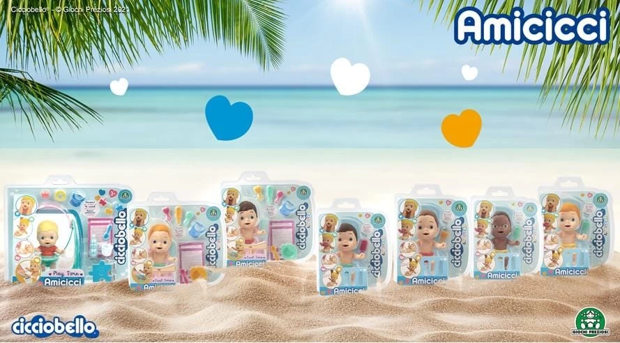 Amicicci Food Time, nuovi piccoli Bebè dal corpo morbido, le bambole sono realizzate in silicone vinile e sembrano bambini Veri! Gli Amicicci hanno tante espressioni divertenti e possono fare tanti movimenti grazie al loro corpo elastico, è l’ora della pappa? dai da mangiare lo speciale cibo con il mini cucchiaio, fai bere il tuo piccolo bebè. Ogni mini CiccioBello include 7 mini accessori, 2 bustine di pappa e pannolino removibile Colorato. Vendita in assortimento di 3 colori, CiccioCarl, CiccioEric, Ciccio bello. Spedizione casuale unitaria.