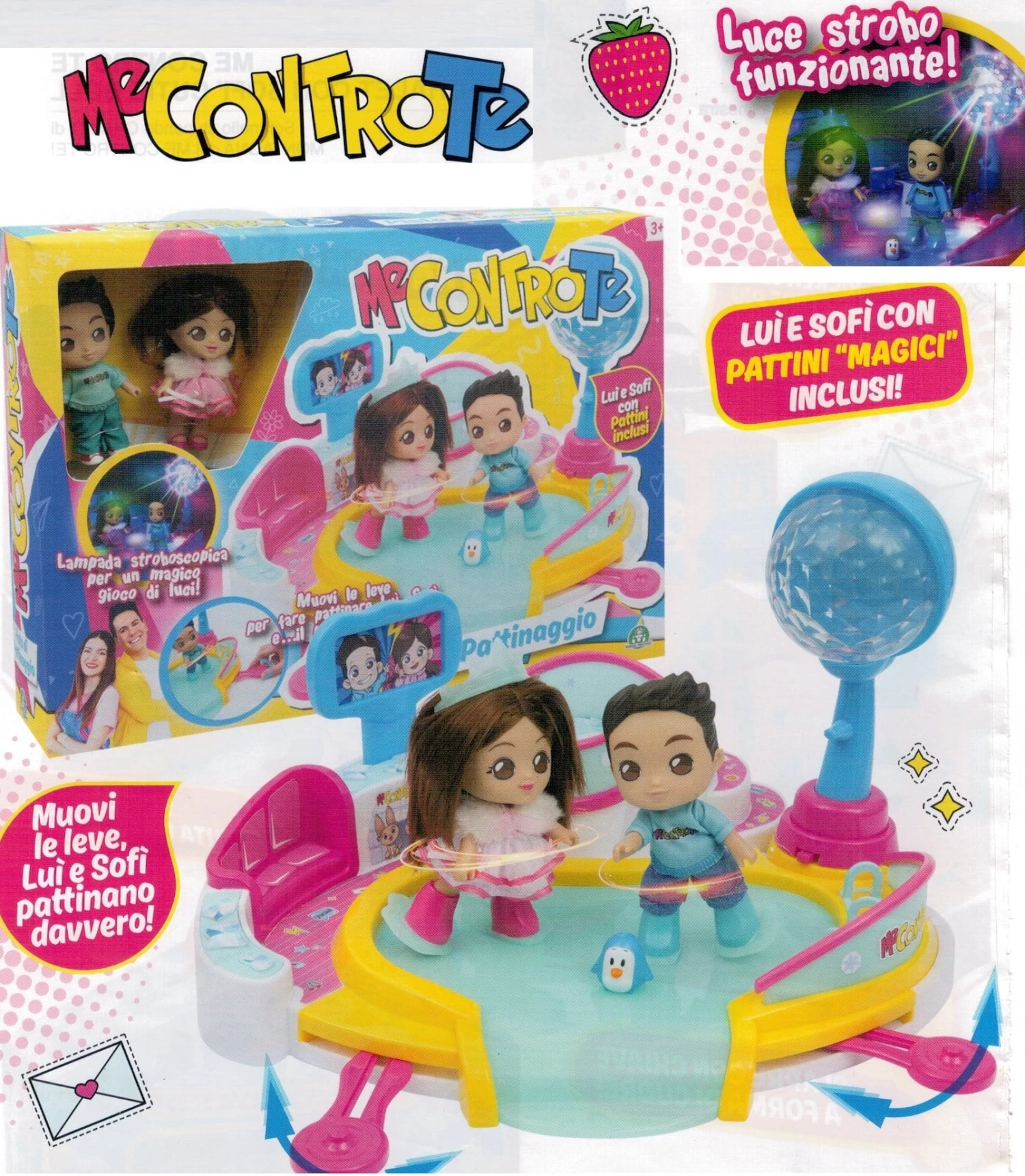Me Contro Te playset Pista di Pattinaggio con Luci, Lui e Sofi pattinano davvero! con i pattini magici inclusi potrai far danzare i personaggi dei MeControTe a ritmo di musica infatti la pista verrà illuminata dalla lampada stroboscopica posta di lato. Set da gioco dinamico, con leve per far muovere le Bambole di Lui e Sofi incluse nella confezione. Necessita di Batterie 3xAAA (non Incluse).
