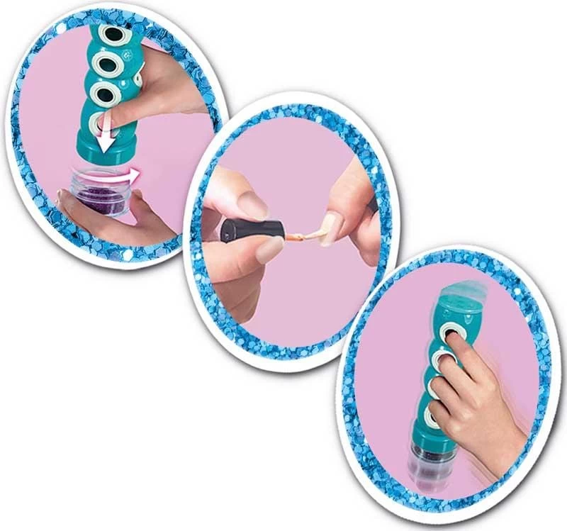 Shaky Nails Very Bella è un innovativo sistema che ti farà avere unghie scintillanti e personalizzate in pochi secondi. Scegli il colore che preferisci ed avvita il contenitore al tubo dello shaker, applica lo smalto e metti le dita nei fori ed ora scuoti! Fatto, unghie glitterate. Il Kit contiene un applicatore glitter per unghie + 5 bottoni pop-out, 2 vasetti glitter, 1 smalto per unghie, 1 pennello. Applicare glitter sulle unghie utilizzando il divertente applicatore stile “maracas”. Adatto a partire dagli 5 anni in su.