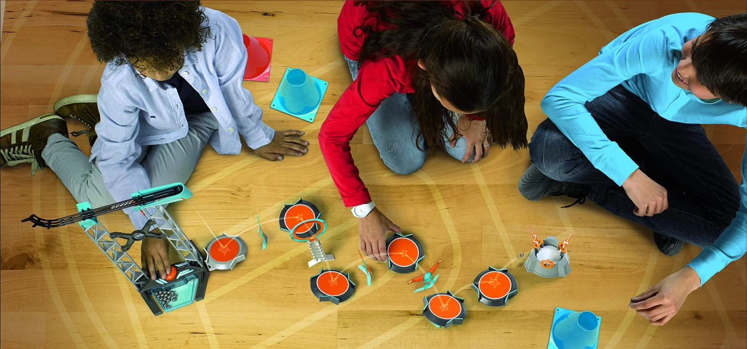 Con il Multiball è possibile creare la propria pista Boomtrix. Fai rimbalzare la palla con le acrobazie più pazze. Con questa Pista la Pallina potrà rimbalzare attraverso le piastre a Zero Gravità! Puoi creare tantissimi percorsi, ovunque tu voglia. La confezione include 1 torre rampa, 5 trampolini, 3 curve del trampolino, 1 anello di acrobazia, 3 parete stunt, 1 obiettivo sbattente, 8 sfere di metallo e istruzioni (lingua italiana non garantita).