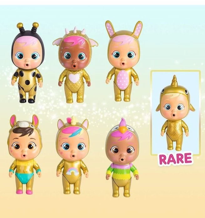 Cry babies Magic Tears Nuova Serie Oro (Golden Edition), sono più di 8 Bamboline da collezionare con tantissime sorprese! Ogni Personaggio del Cartone ha la sua casetta e i suoi accessori, fai bere l’acqua alla tua bambolina grazie al suo biberon magico, premi il pancino e piangerà lacrime dorate! Nuova Confezione a forma di lacrima colore Dorato, serie limited edition, trova il personaggio Raro! Vendita unitaria in assortimento, App inclusa. Prodotto a sorpresa Imc Toys. +3 Anni