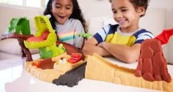 Disney Cars On The Road, Playset Parco dei Dinosauri. Ispirato all’episodio Dino Park di Cars On The Road di Disney e Pixar, questo set di gioco mette in risalto il sogno ad occhi aperti del dinosauro di Mater: un enorme dinosauro masticatore si trova al centro del set di gioco, pronto a dare un morso all’eroe Cave Saetta McQueen. I bambini usano il lanciatore per saltare attraverso il campo di lava: il veicolo può evitare la bocca della feroce creatura o il dinosauro lo catturerà in aria? Il set di gioco include un veicolo Cave Lightning McQueen, che lo rende facile da estrarre dalla scatola e iniziare a giocare. Con così tanta azione, questo playset di Cars è un fantastico regalo per bambini e fan dai 3 anni in su.