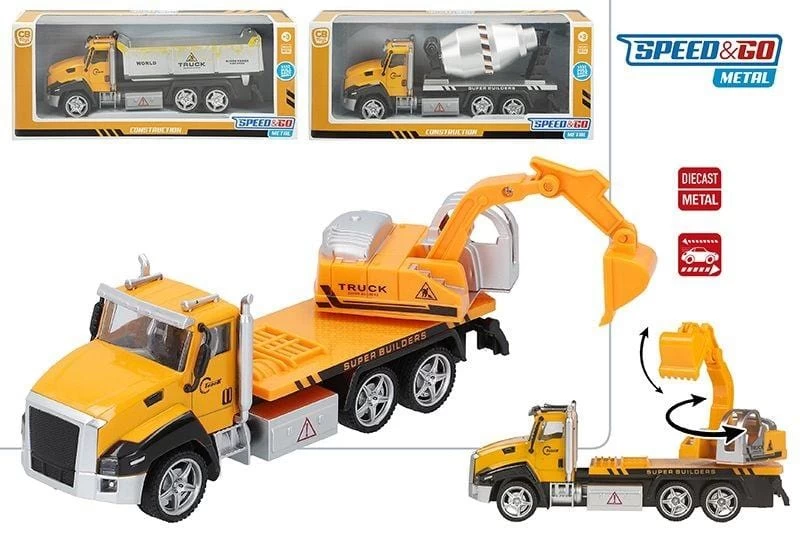 Modellino Camion in Metallo, stupendo veicolo giocattolo con dettagli realistici e sistema di carica a frizione. Vendita unitaria in assortimento di modelli, Camion da Carico, Camion con Pala Meccanica, Betoniera. +3 Anni.