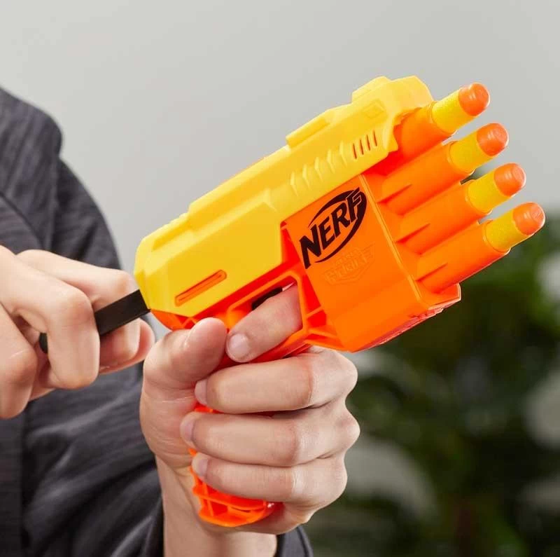 Il Fucile Nerf Fang Qs4 appartiene ai Blaster facili da usare così i principianti possono iniziare a sparare velocemente. Il Fang QS-4 ha 4 canne in modo da poter sparare fino a 4 freccette di fila! Facile da usare, carica 1 dardo in ogni canna, tira la maniglia per innescare e premi il grilletto per sparare 1 dardo. Viene fornito con 10 freccette Nerf Elite ufficiali per ricariche multiple. I dardi ufficiali Nerf sono testati e approvati e sono realizzate in schiuma con punte flessibili e cave. Non sono necessarie batterie. Età consigliata +8 Anni. Vendita in Assortimento di Colori.