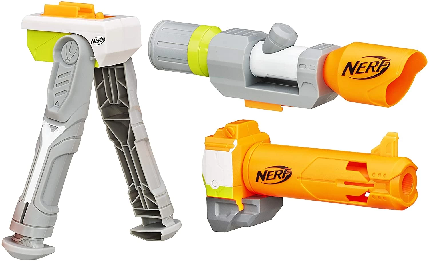 Nerf Upgrade Kit per Tiro a lungo Raggio, diventa un professionista con il nuovo modulo Nerf Long Range. In Dotazione: Ottica, Bipiede e Prolungamento. Trasforma il Tuo nerf in Un Blaster di precisione.