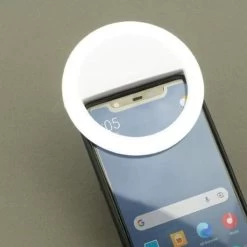 Il selfie ring ha due livelli di luminosità ed è ricaricabile con cavetto USB micro-B. Cavetto non incluso.