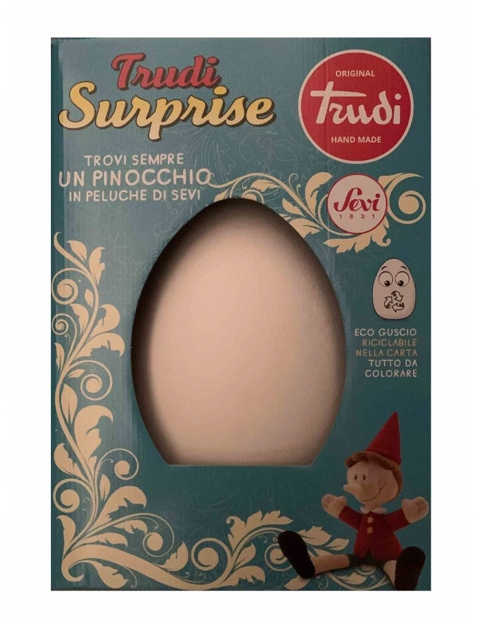 Pasqualone Trudi Surprise Pinocchio 2022, fantastico Uovo di Pasqua contenente tantissime Sorprese. Il guscio è realizzato con materiali ecologici ed è riciclabile, inoltre è interamente bianco così potrai divertirti a colorarlo, dipingerlo e decorarlo come preferisci. All’interno troverai tantissime morbide sorprese by Trudi. Come il tenero peluche di Pinocchio, super morbido e ricco di dettagli fedeli al famoso burattino.