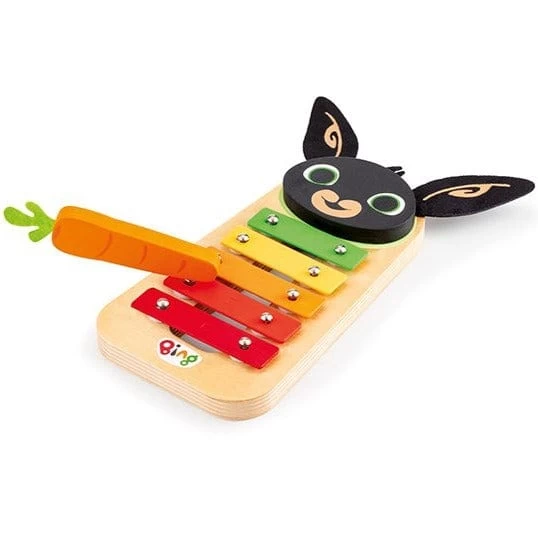 Bing Xilofono in Legno per Bambini, Il simpatico coniglietto è il protagonista di un coloratissimo xilofono a 5 toni, interamente realizzato in legno, dal suono dolce e delicato.