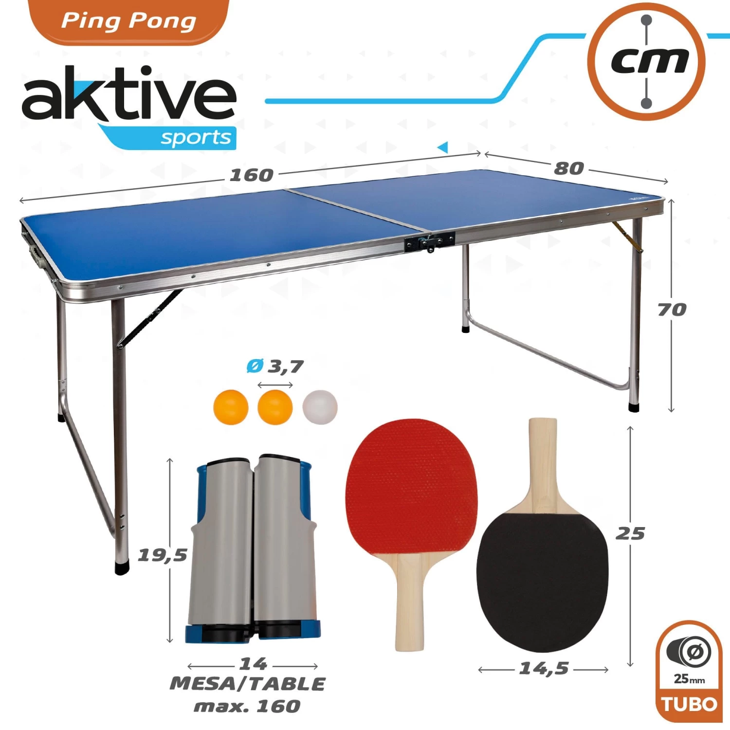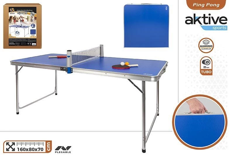 Pratico e Resistente Tavolo da Ping Pong Portatile con Racchette e Rete per Giocare Subito! Il Tavolo è richiudibile e dotato di pratica Maniglia per il Trasporto, realizzato in Alluminio di Sezione Maggiorata e dotato di Staffe di Rinforzo. All’occorrenza può essere utilizzato come semplice tavolo da Campeggio. Dimensioni 160x80x70cm. Comprende Set da Gioco Ping Pong(rete Fast, racchette e palline).