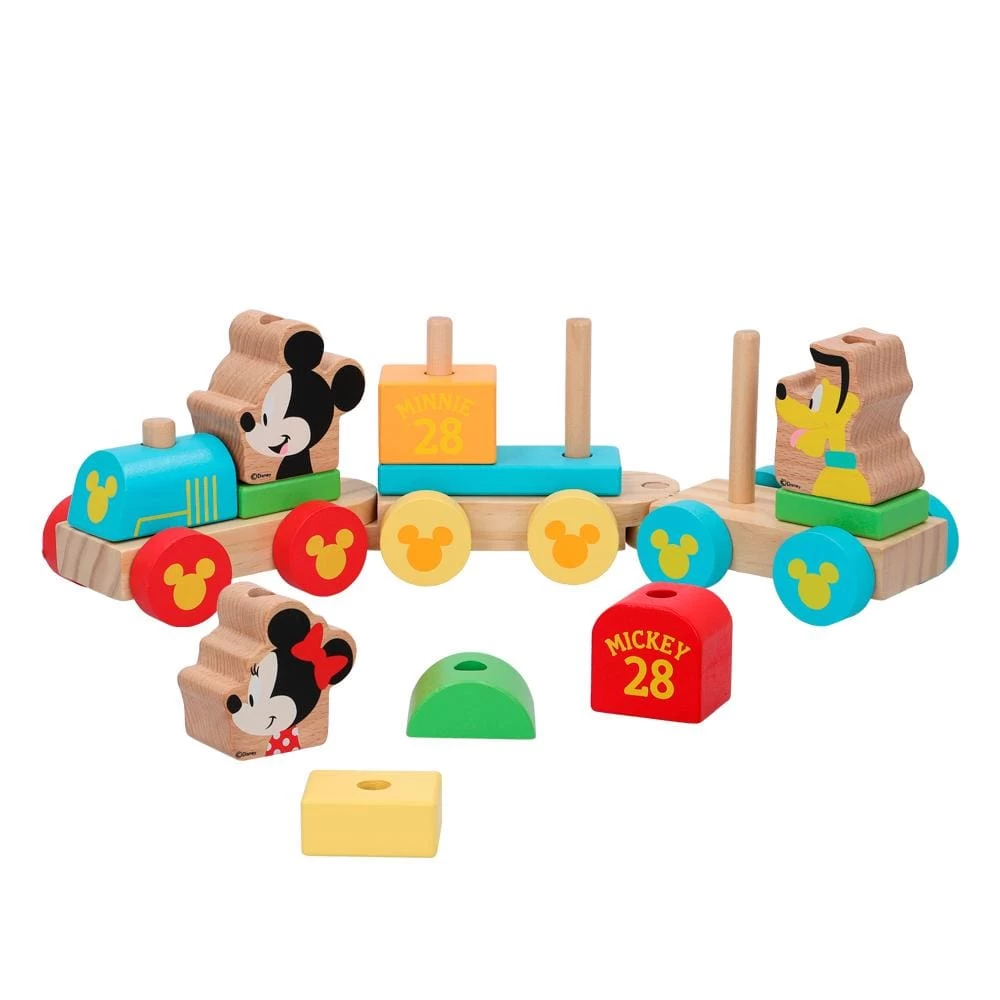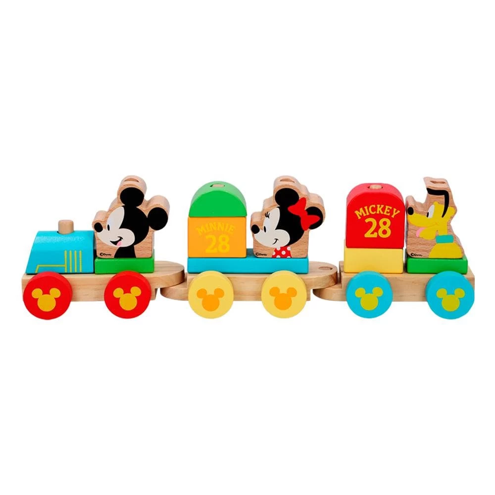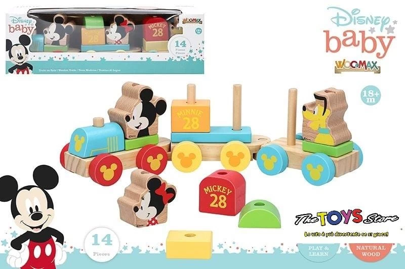 Trenino in Legno Trainabile con i Simpatici Passeggeri Disney. Treno di Mickey Mouse, Minnie, Pluto Treno in Legno Certificato e Sicuro, Dimensioni cm 36*12*10 circa. Età Consigliata +18Mesi
