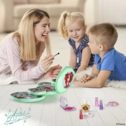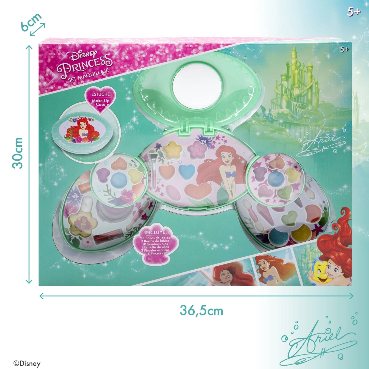 Stupenda Trousse Disney per Bambina, Make up Ariel la Sirenetta. Tantissimi Accessori: 10 Ombretti, 15 Lucida Labbra, 3 Rossetti, 1 Smalto per Unghia e Accessori per Truccarsi. Prodotto Certificato e Sicuro con Licenza Ufficiale Disney.