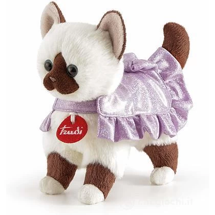 Gatto Birmano lilac romantic, la serie di Peluche Trudi dedicata alle Bambine alla moda. I Cagnolini ed i gattini sono vestiti con adorabili abitini che si possono togliere e scambiare tra loro mentre si gioca. Il tenero Gattino ha un vestitino Lilla, in delicati colori pastello. Il peluche e il vestito sono lavabili in lavatrice a 30°