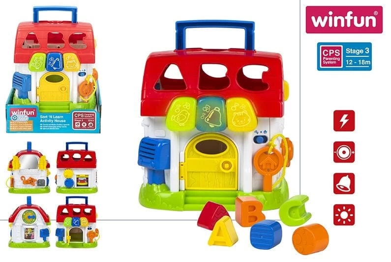 Casetta Attività Educative con Luci e Suoni +12Mesi, Casa elettronica per i più piccoli con tanta Giocabilità . Un Giocattolo Fondamentale per lo sviluppo di tutte abilità di base del bambino! la Casa emette Luci e Suoni, è composta da tanti ingranaggi e anellini, forme 3D ad incastro, orologio, specchietto e tanto altro! Adatta a partire da 1 Anno di Età . Batterie Incluse.
